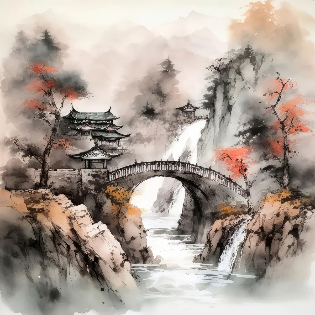 Peinture Peinture de paysage chinois avec un pont Art. s34627