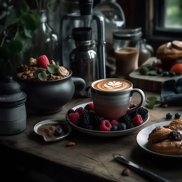 Peinture Petit-déjeuner sain avec du cappuccino Art. s32154
