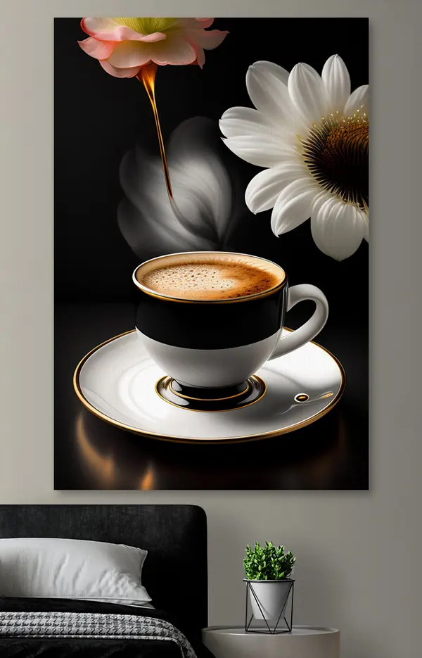 Peinture Une tasse de café avec des fleurs Art. s32167
