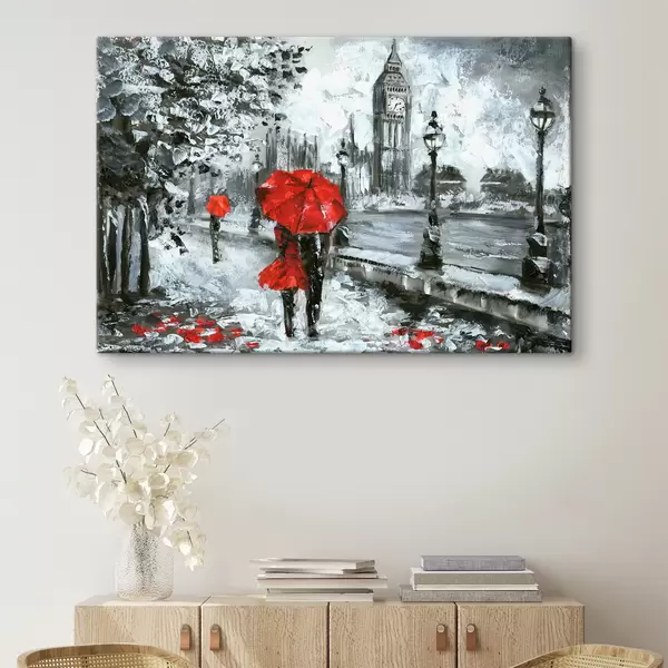 Peintures Peinture à l'huile, scène de rue de Londres en noir et blanc s34614