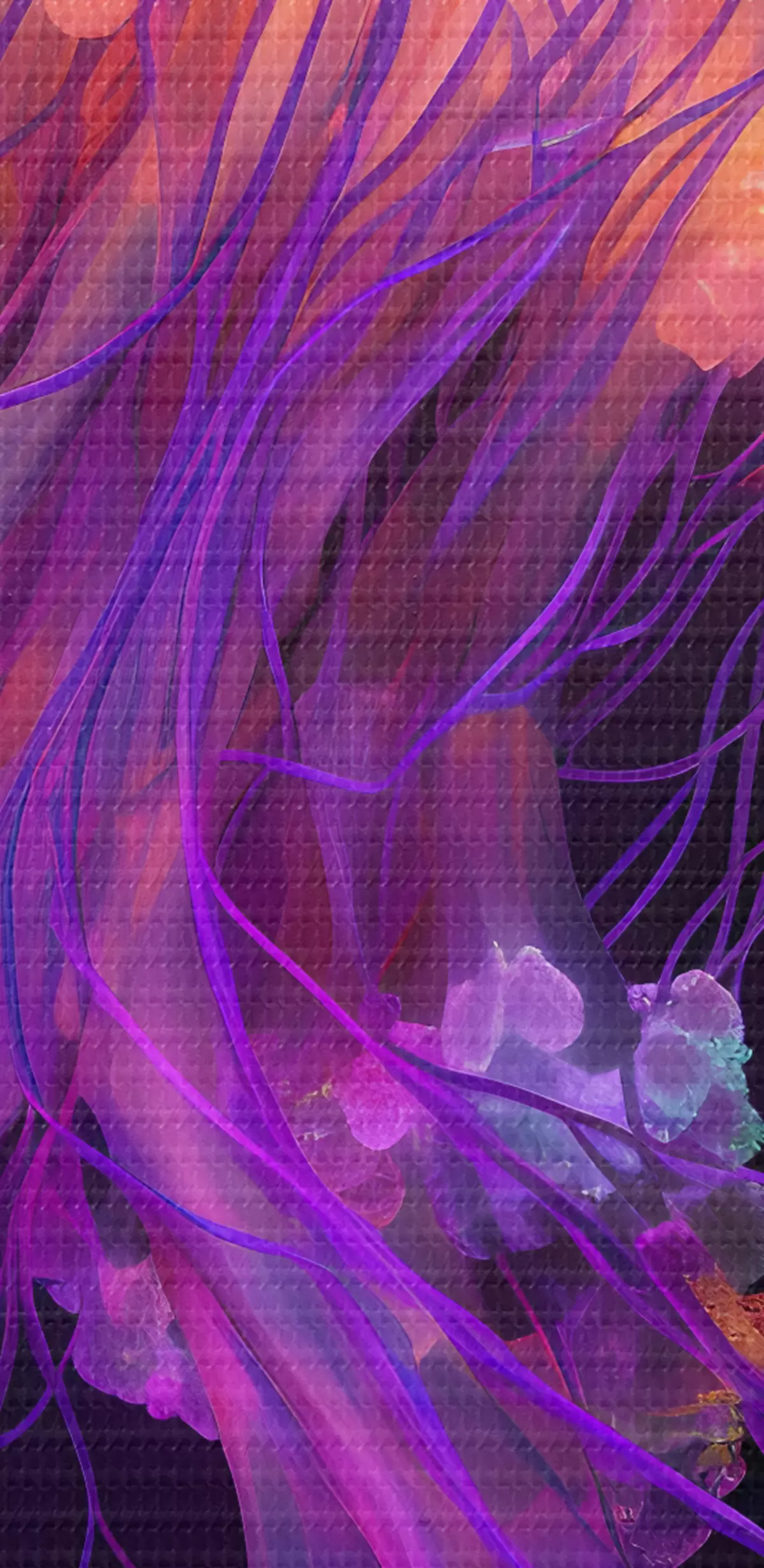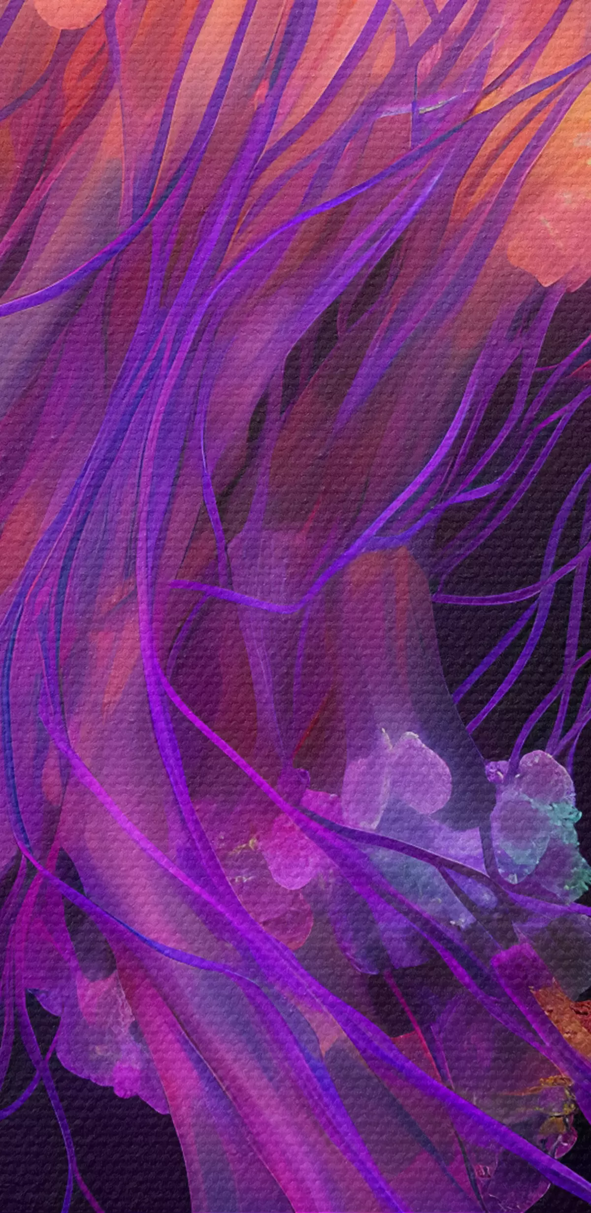 Peinture Des méduses lumineuses nagent dans les profondeurs de la mer bleue Art. s35363