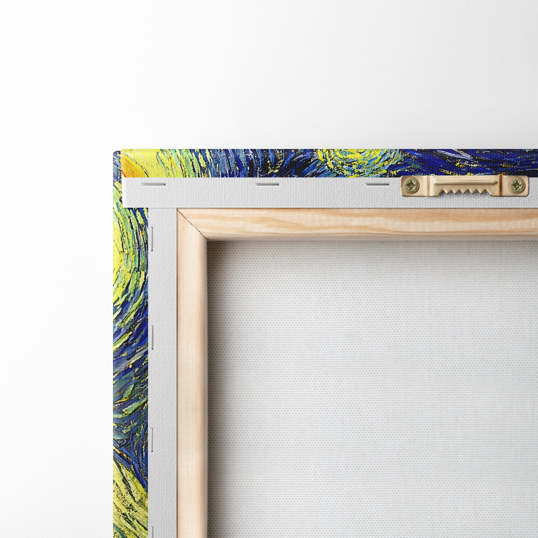 Nous vendons des tableaux sur châssis - il s'agit d'un cadre en bois sur lequel la toile est tendue. Ce tableau n'a pas besoin d'être encadré ; vous pouvez l'accrocher directement au mur.