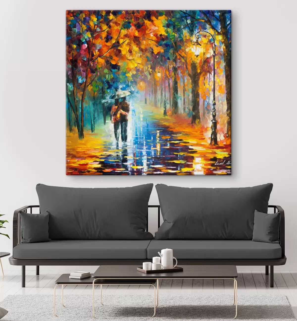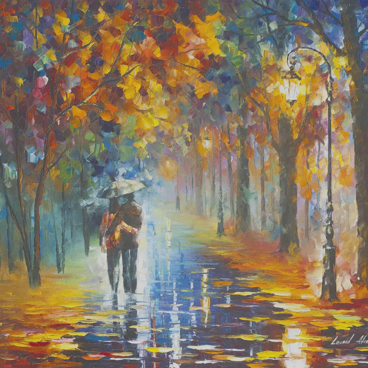 Peinture Couple sous un parapluie, automne Art. s15186