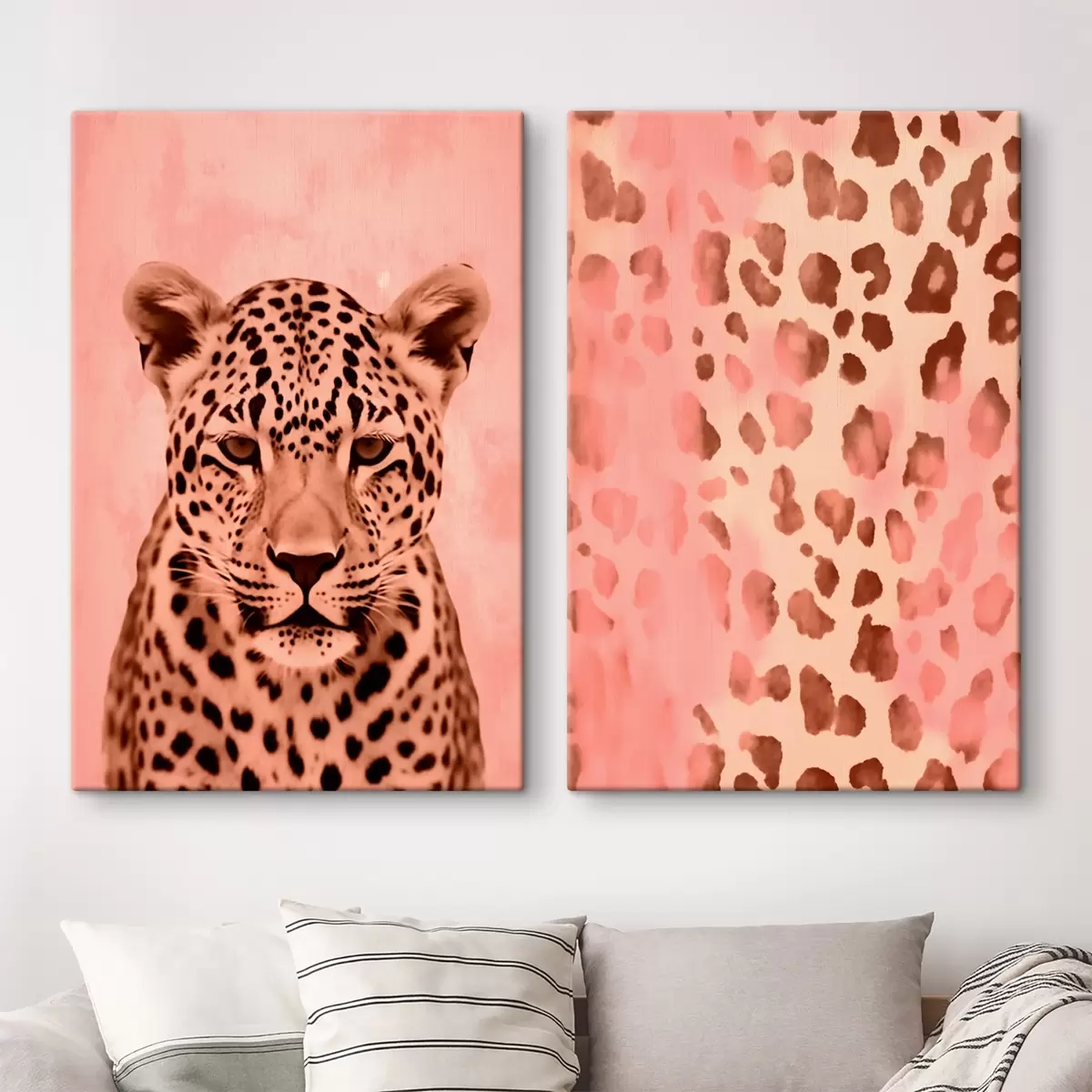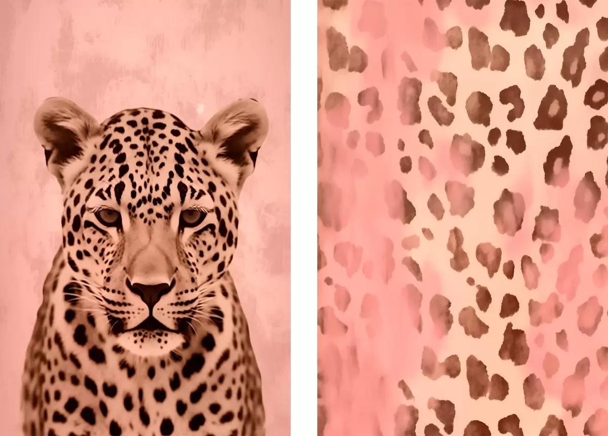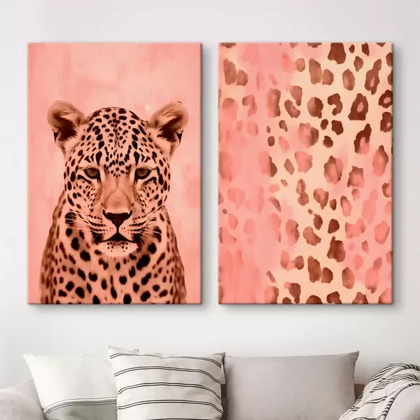 Peintures Portrait d'un guépard, Motif abstrait avec impression de léopard sur fond rose m00402