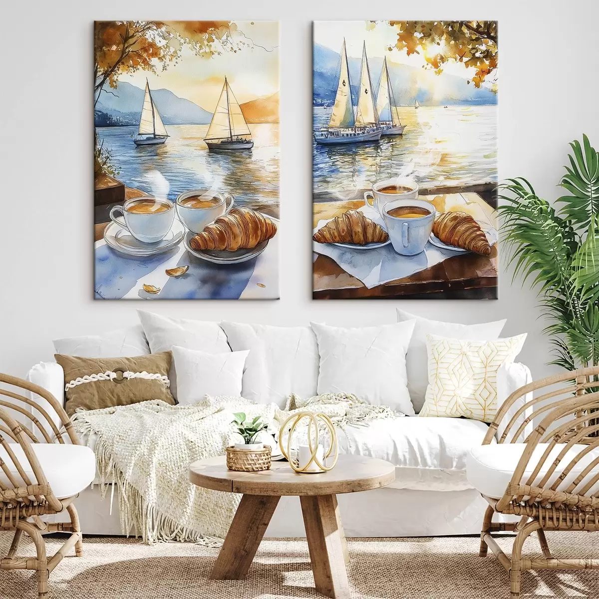 Peintures Coucher de soleil sur le lac avec des ups de café, voiliers, nature, voyage m00407