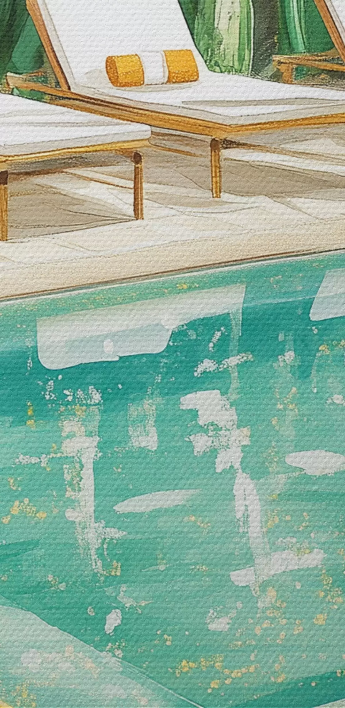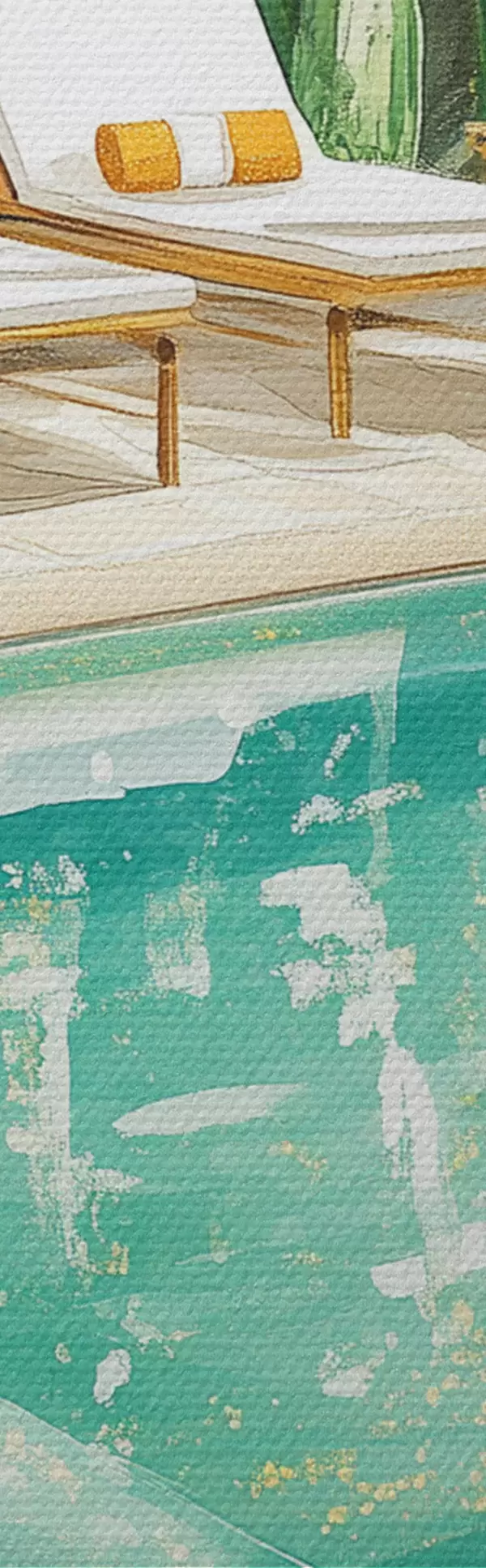 Peinture Piscine d'été, vintage, forêt tropicale, verdure, palmiers, style aquarelle Art. m00422