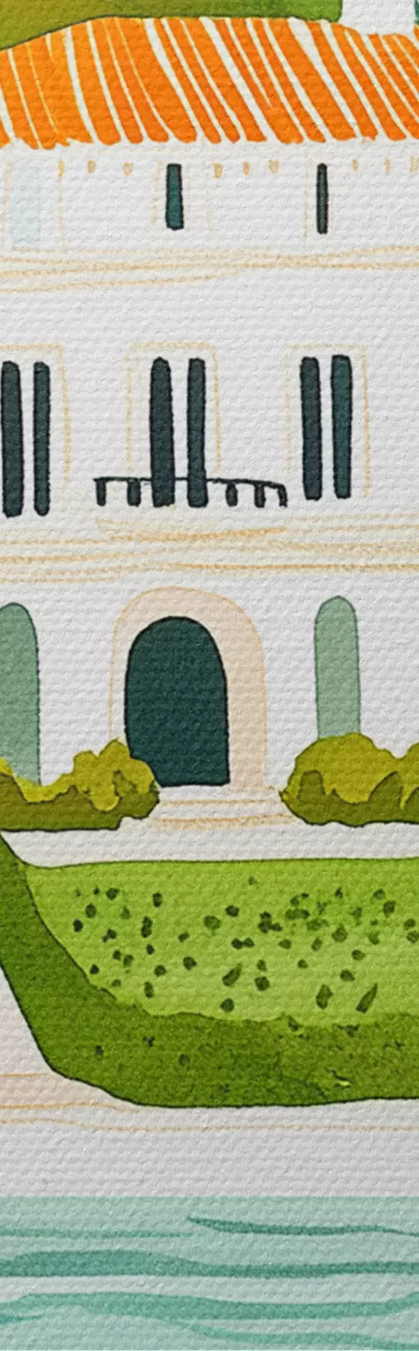 Peinture Paysages méditerranéens avec arbres et maisons, côte maritime, Espagne Art. m00450