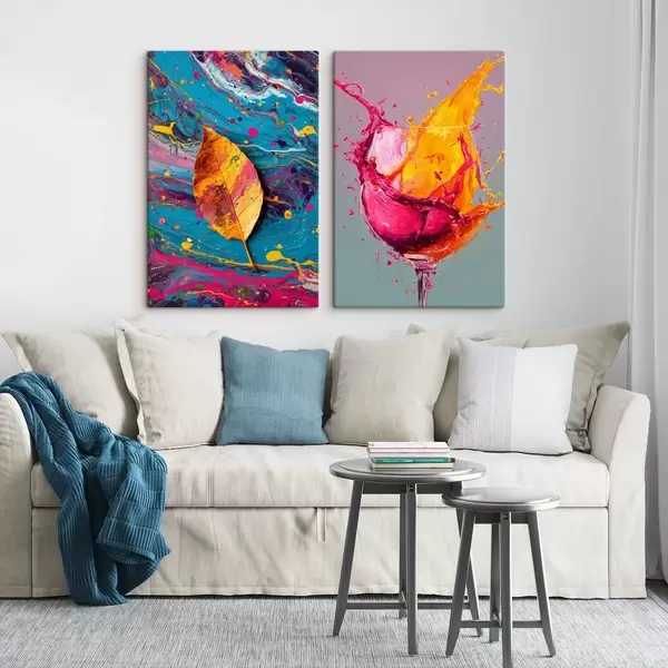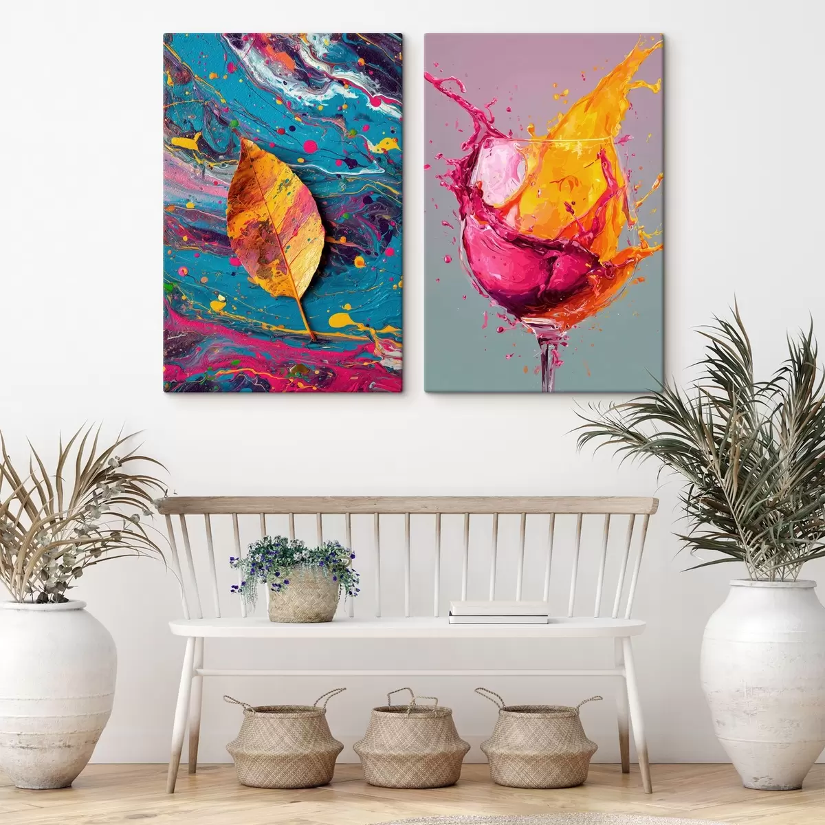 Peintures Abstraction expressive avec des éléments de la nature et des boissons m00570