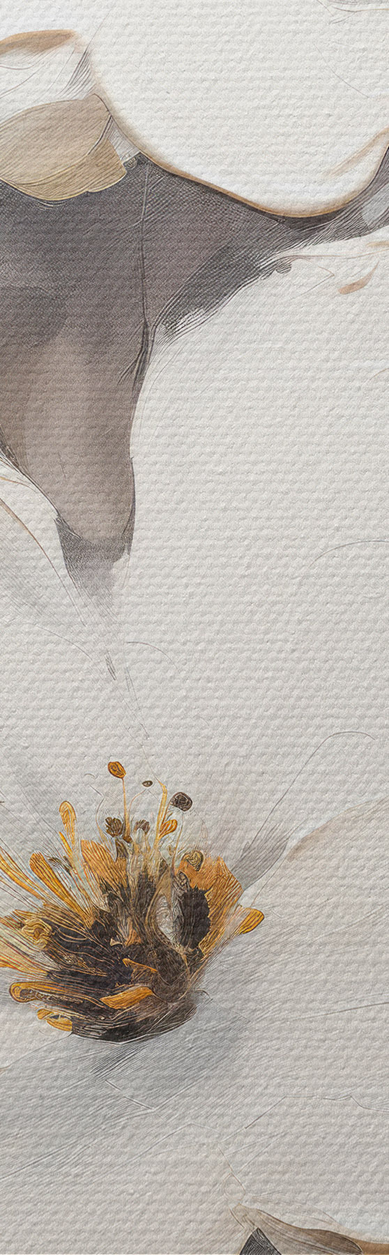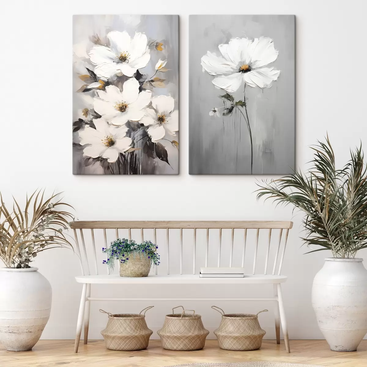 Peintures Composition artistique avec des fleurs blanches et une surface texturée dans un style minimaliste m00574