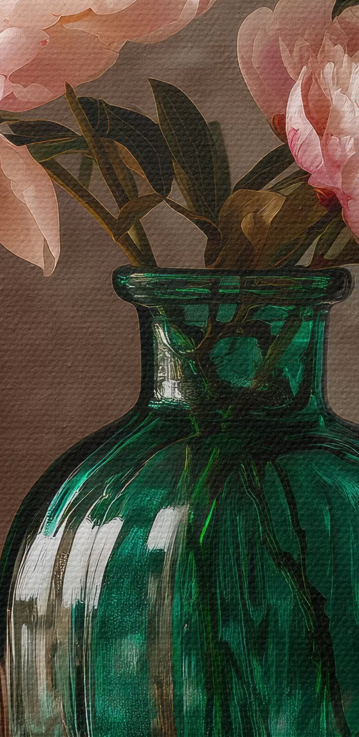 Peinture Composition jumelée avec des pivoines roses dans un vase et sur toile Art. m00578