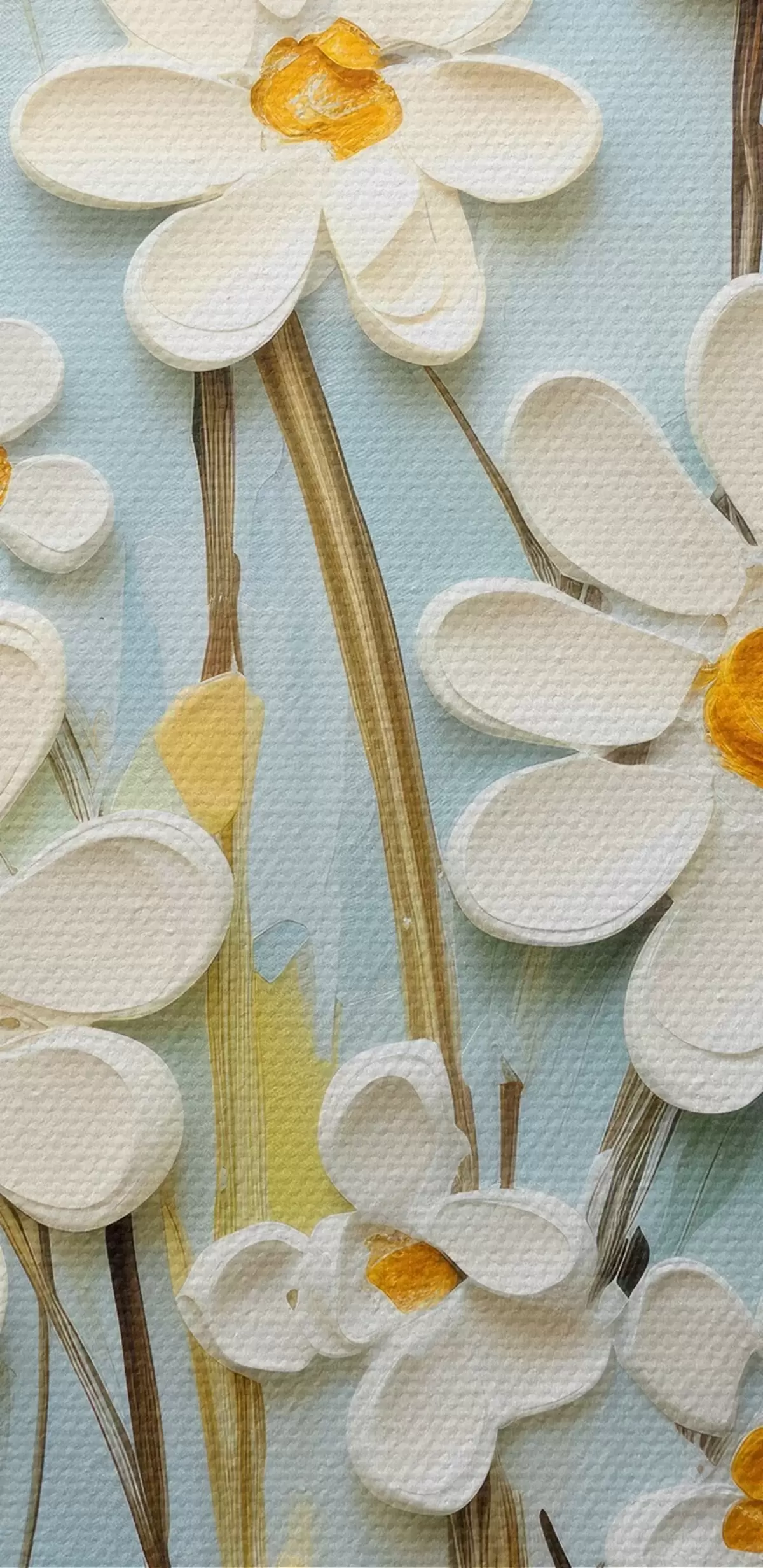 Peinture Fleurs ensoleillées : duo artistique avec des marguerites volumétriques et des accents jaunes Art. m00580