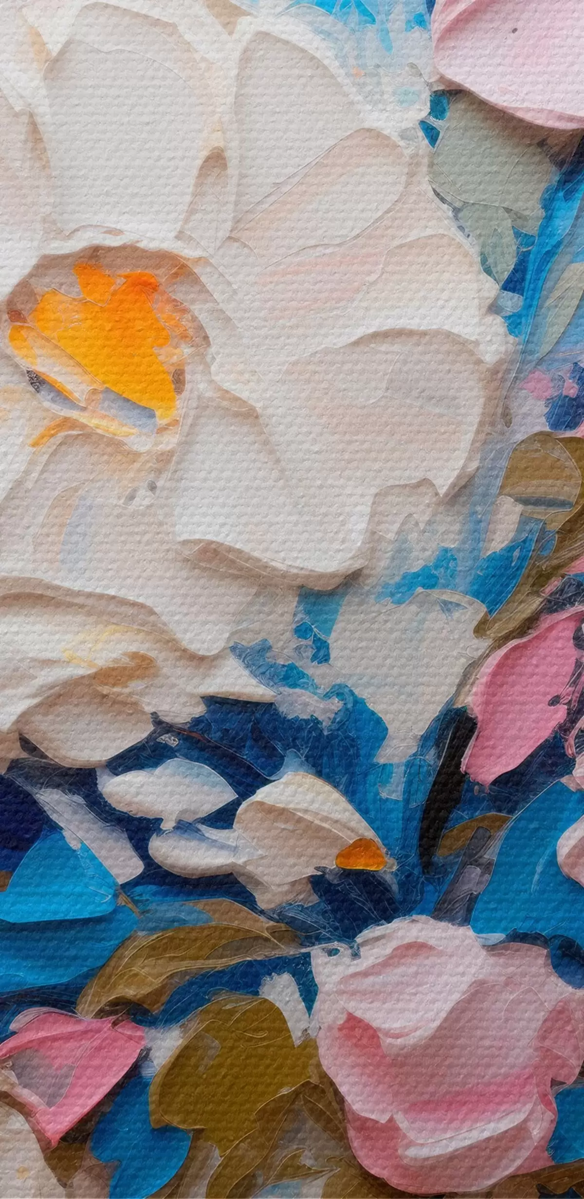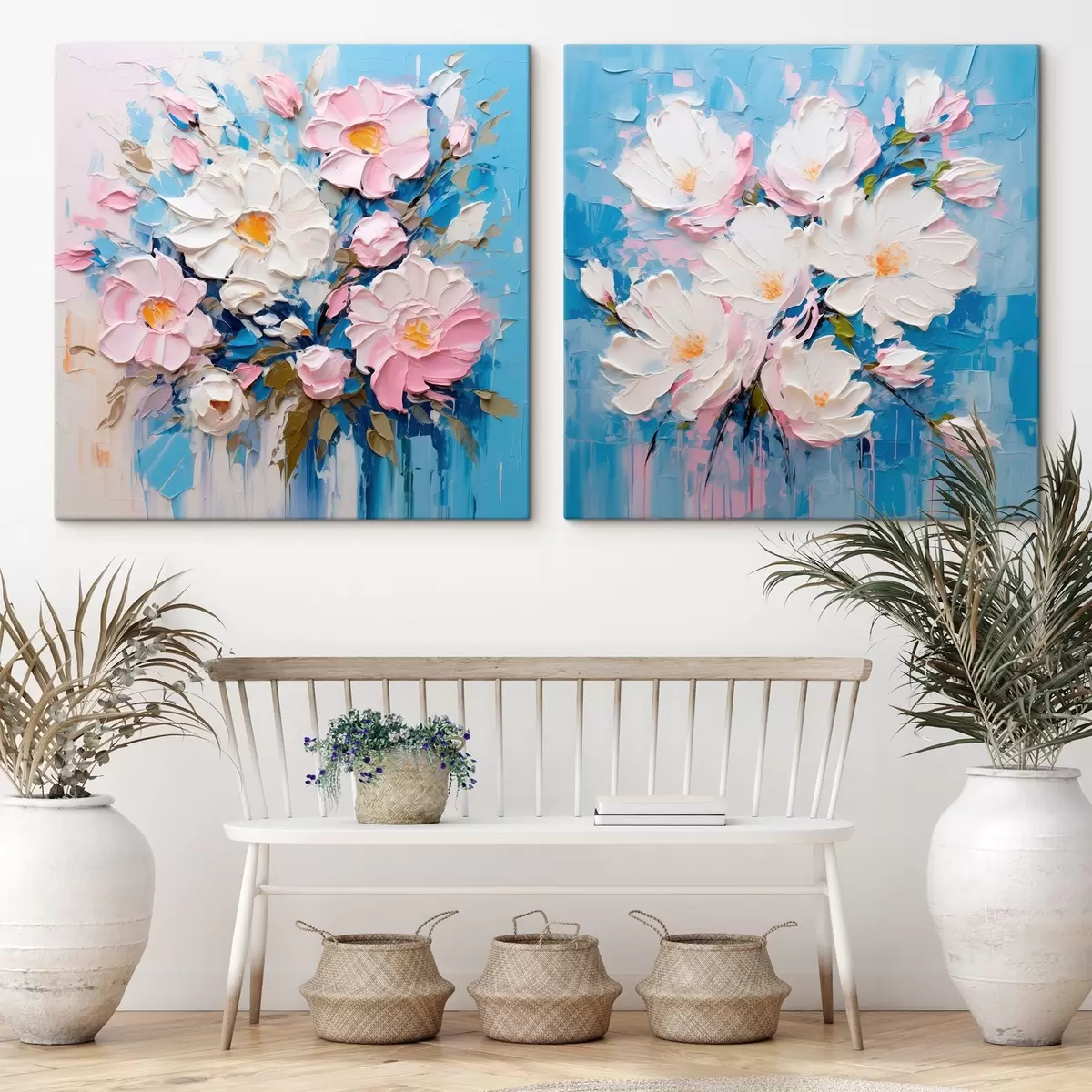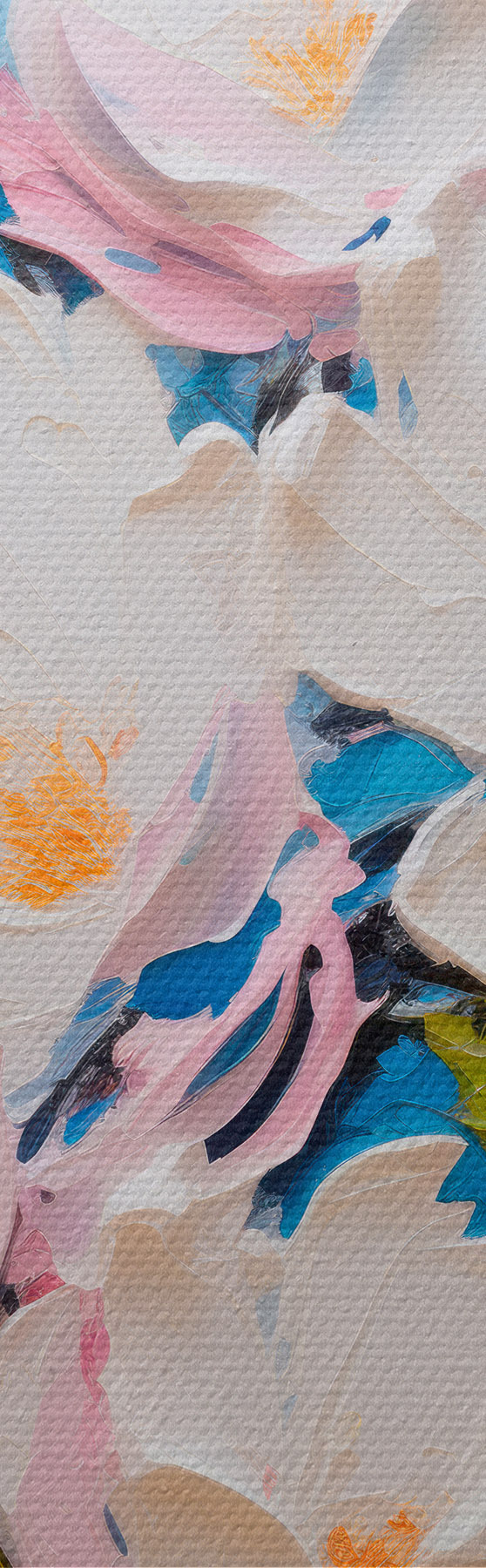 Peinture Fleurs abstraites : composition décorative dans les tons roses et bleus Art. m00643