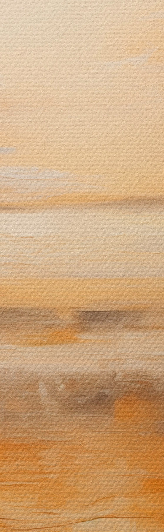 Peinture Peinture abstraite d'un paysage de plage avec un océan calme, du sable orange et un ciel nuageux avec du soleil Art. m00653