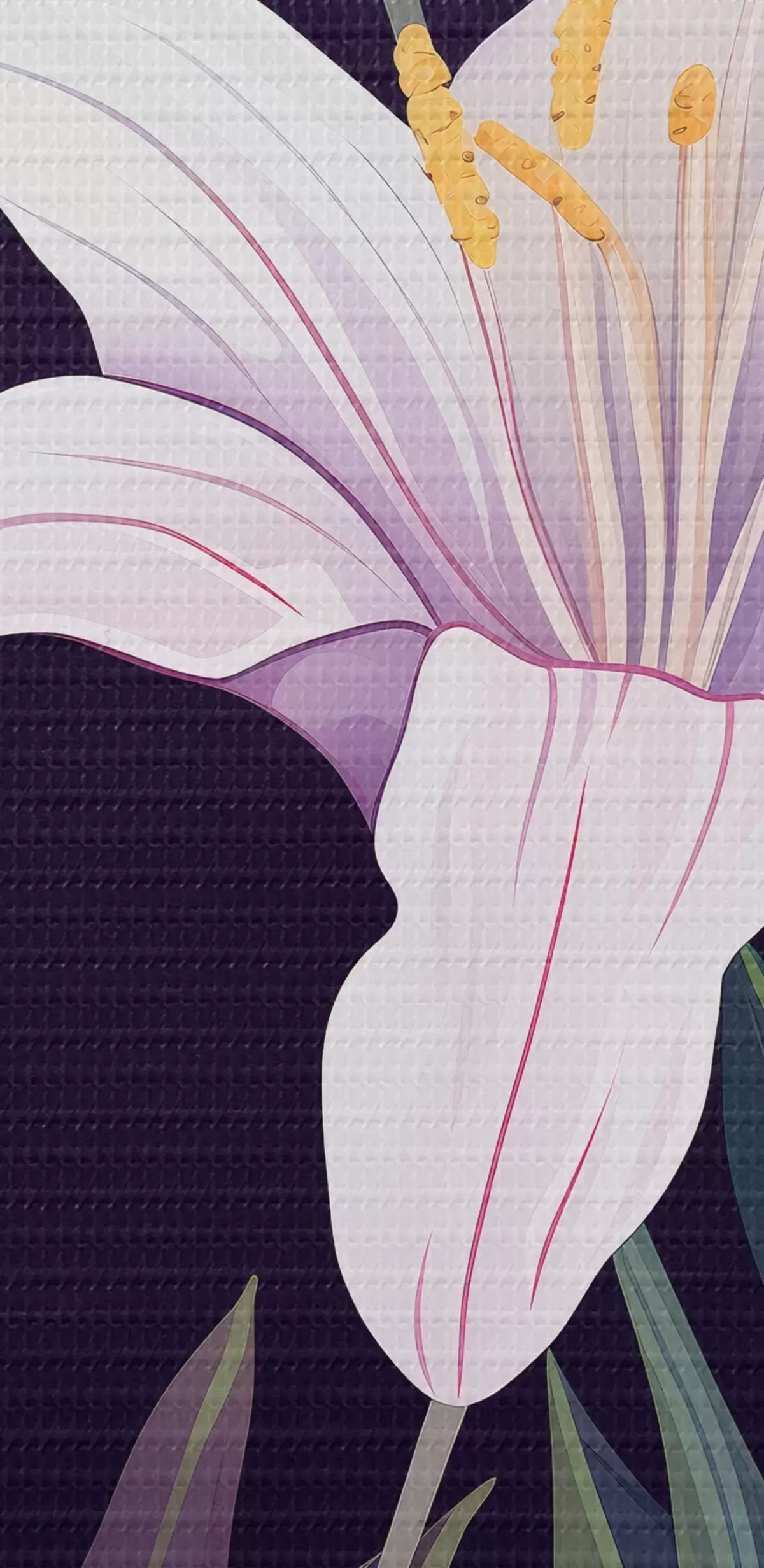 Peinture Lys roses délicats avec feuilles vertes sur fond clair et foncé Art. m00689