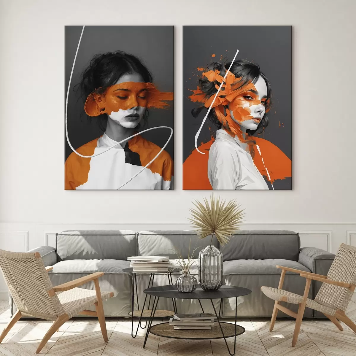 Peinture Portraits de filles avec des coups de pinceau abstraits de couleur orange Art. m00693