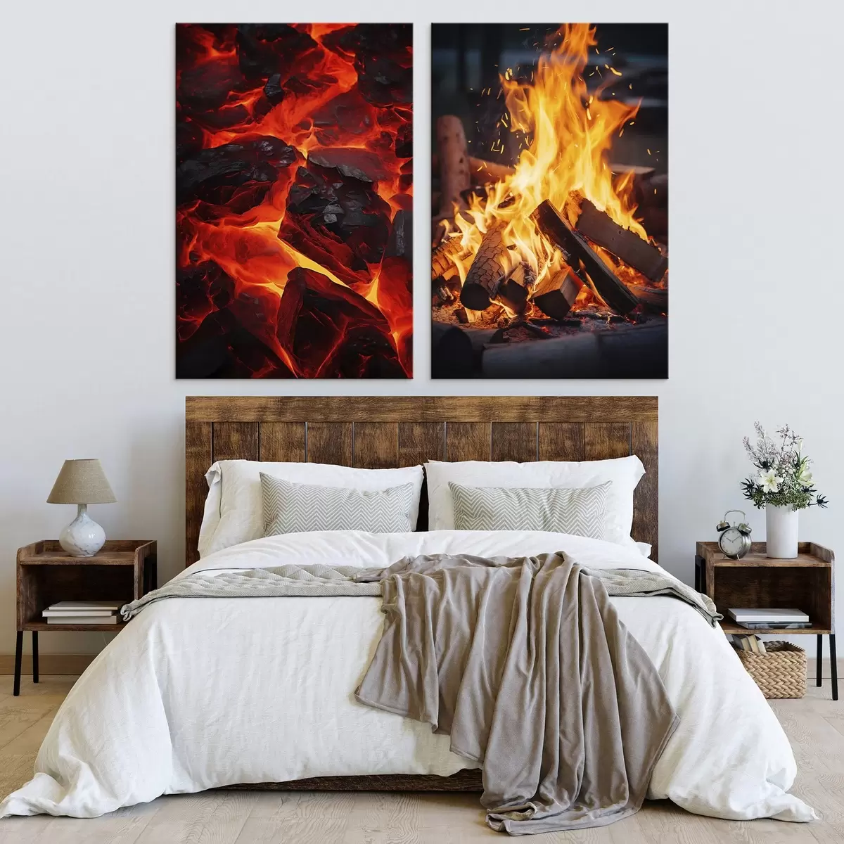 Peinture Charbons ardents et flammes dans l'obscurité Art. m00696