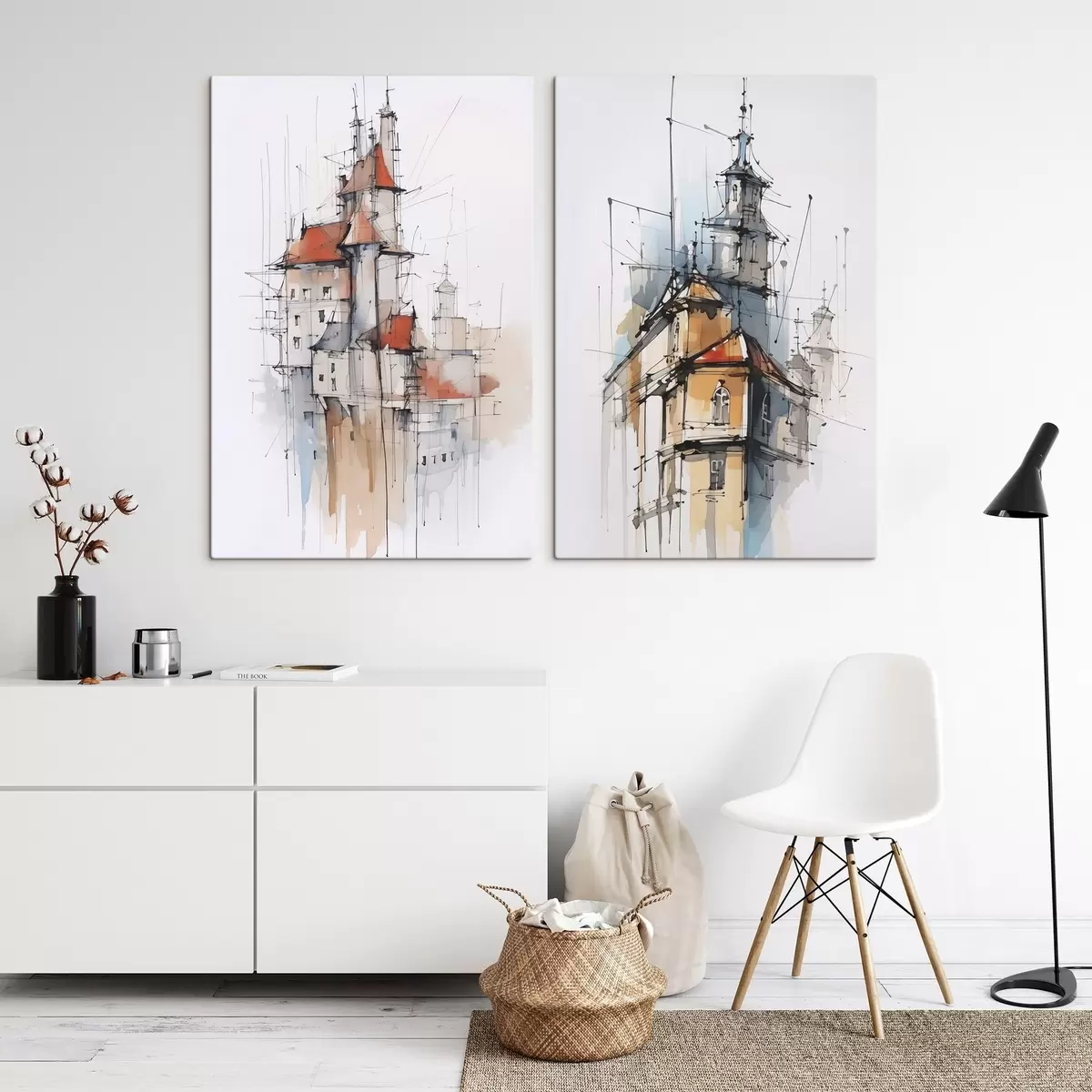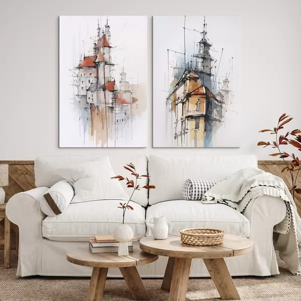 Peinture Maisons imitation croquis et aquarelle Art. m00725