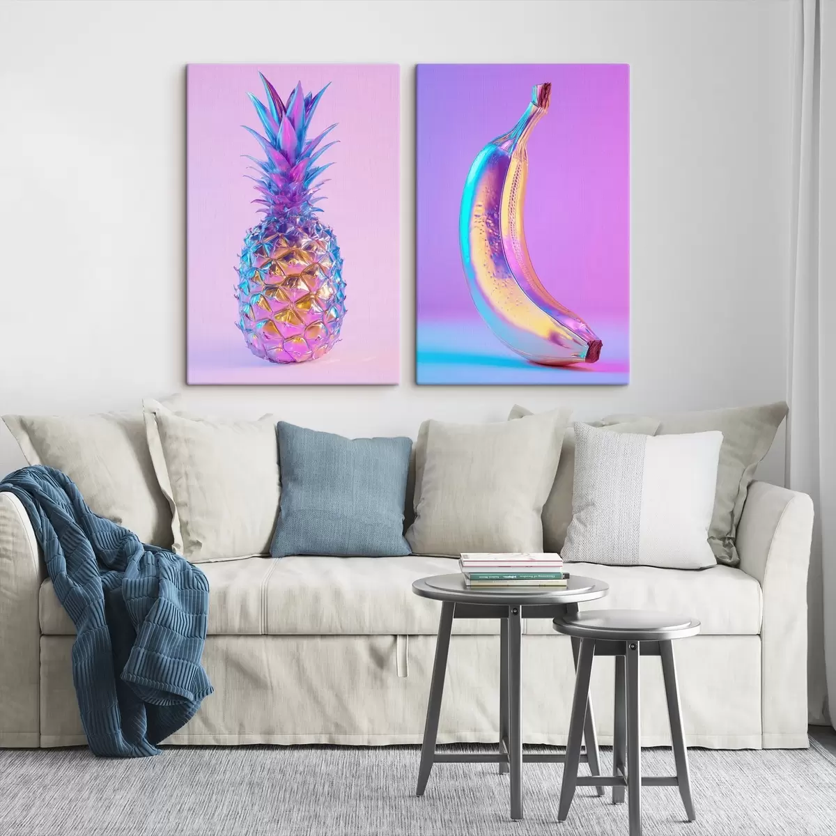 Peinture ananas et banane brillants et éclatants dans un style pop art Art. m00737