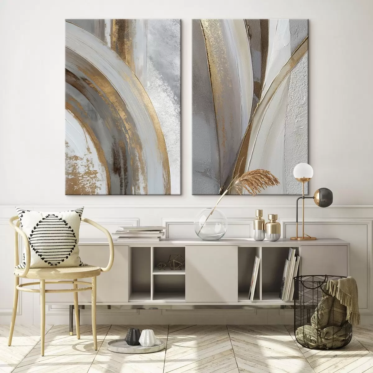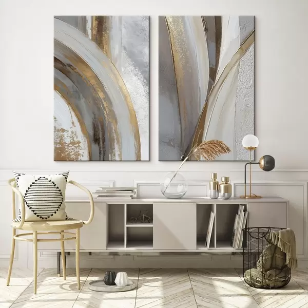 Peintures Arcs abstraits gris et jaunes dans un style moderne m00749