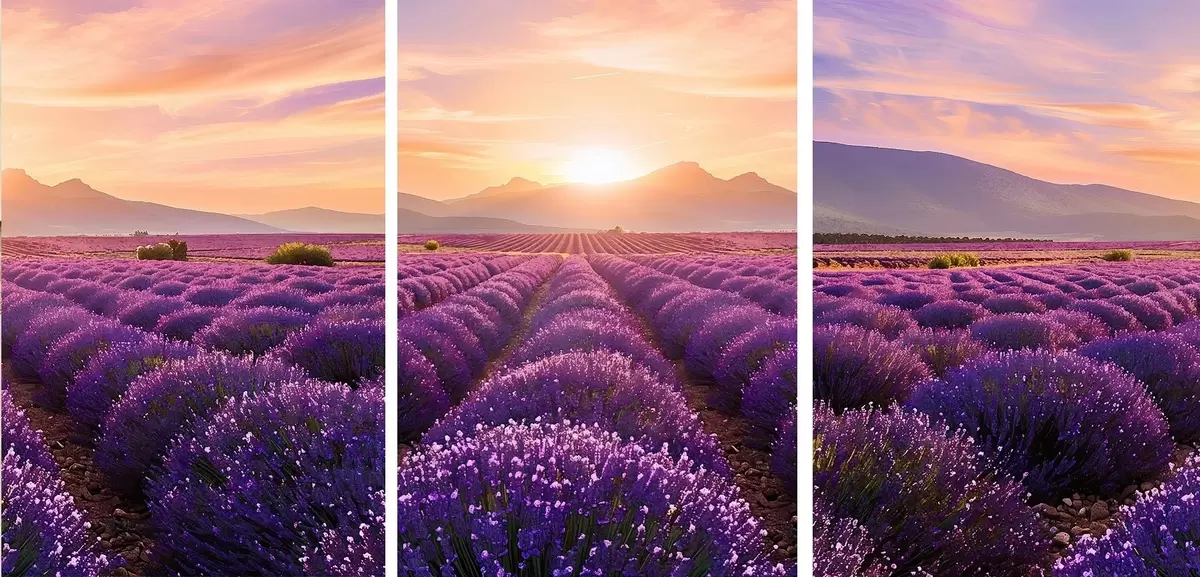 Peintures Coucher de soleil dans un champ de lavande m00785
