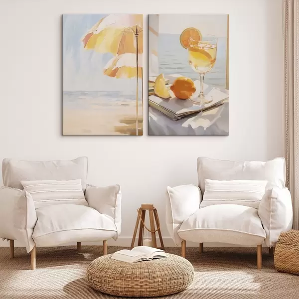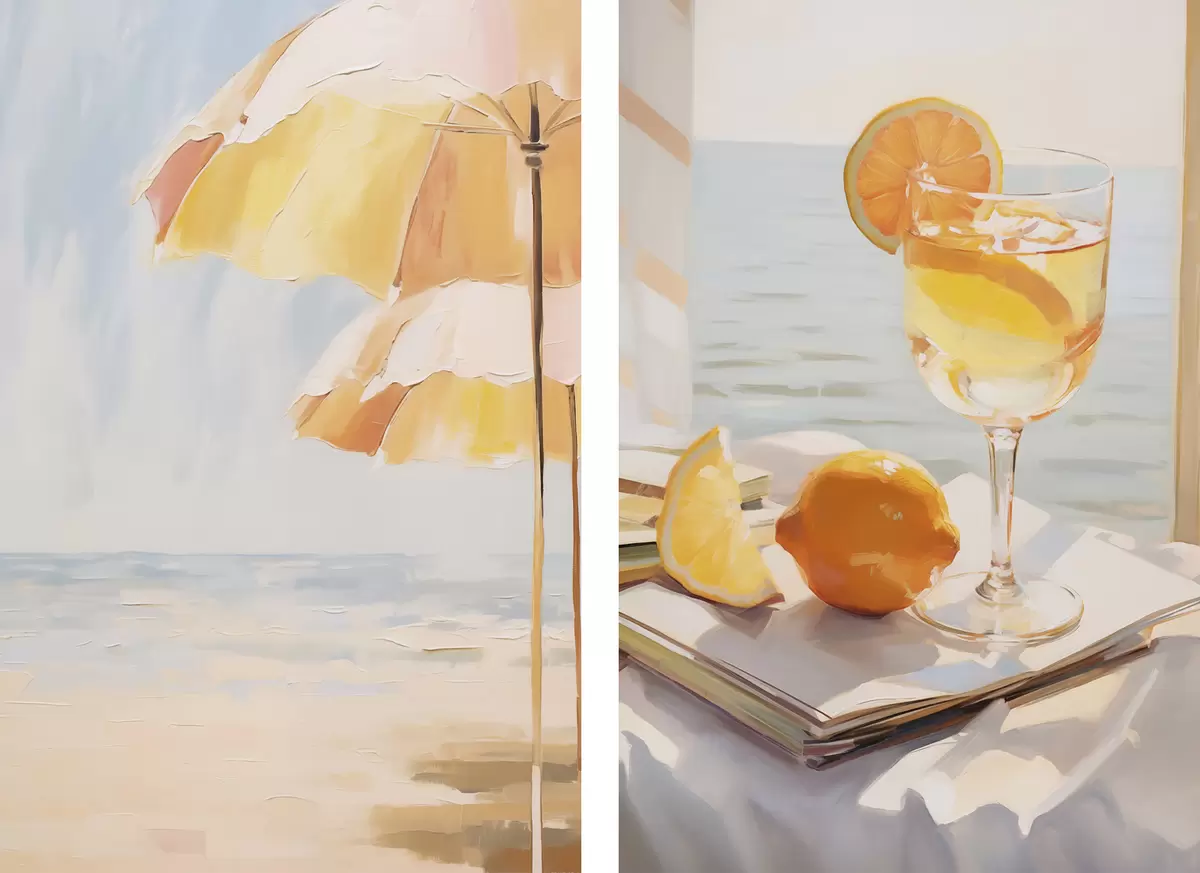 Peinture Paysage de plage et cocktail dans un verre Art. m00793