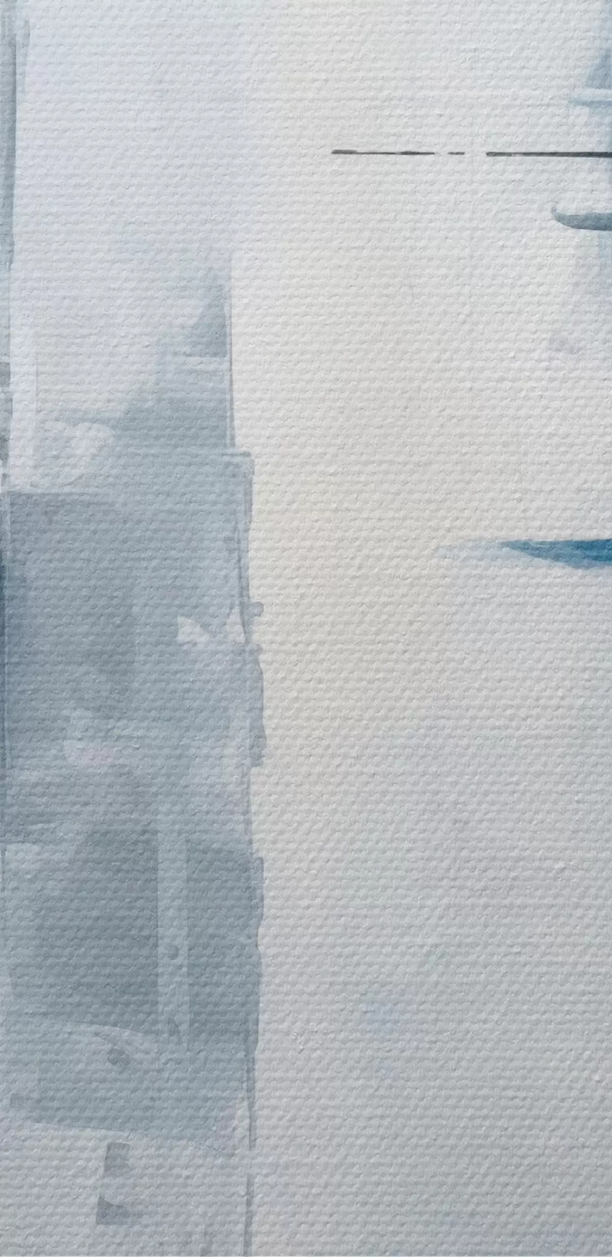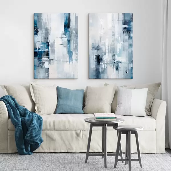 Peinture Imitation de peinture abstraite avec des couleurs bleues, grises et blanches, des lignes verticales et des formes géométriques Art. m00819