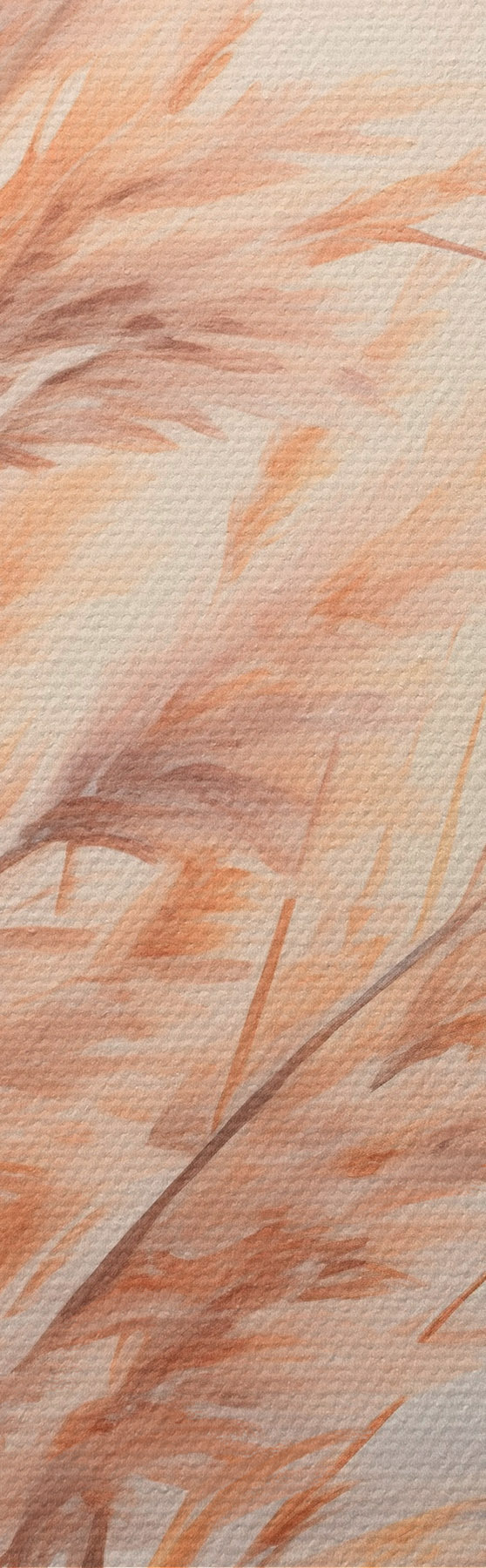 Peinture Herbe de la pampa avec une palette de couleurs orange pastel, un ciel rose pâle, un paysage paisible Art. m00823