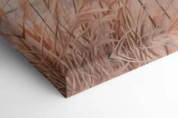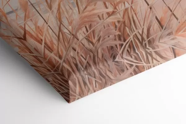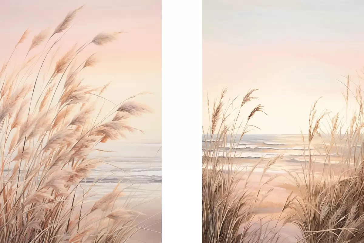 Peintures Herbe de la pampa avec une palette de couleurs orange pastel, un ciel rose pâle, un paysage paisible m00823