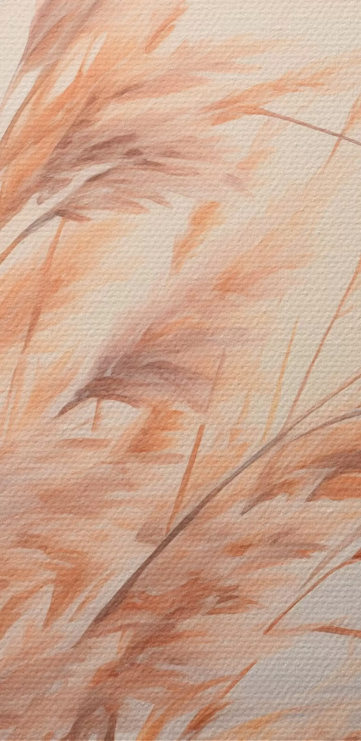 Peinture Herbe de la pampa avec une palette de couleurs orange pastel, un ciel rose pâle, un paysage paisible Art. m00823