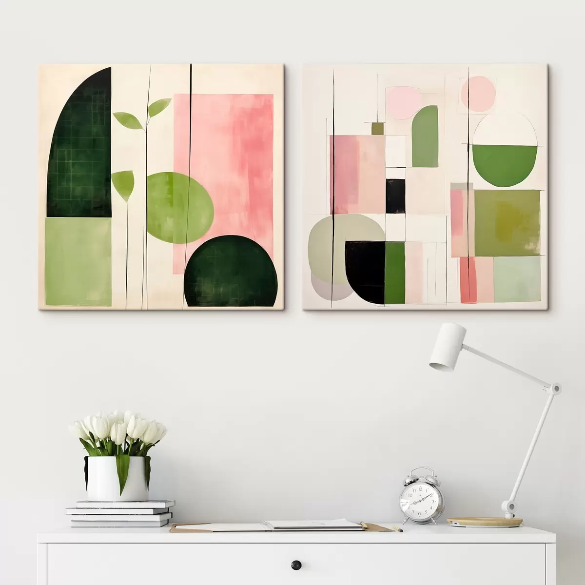 Peinture Diptyque minimaliste avec motifs floraux stylisés et géométriques Art. m00894