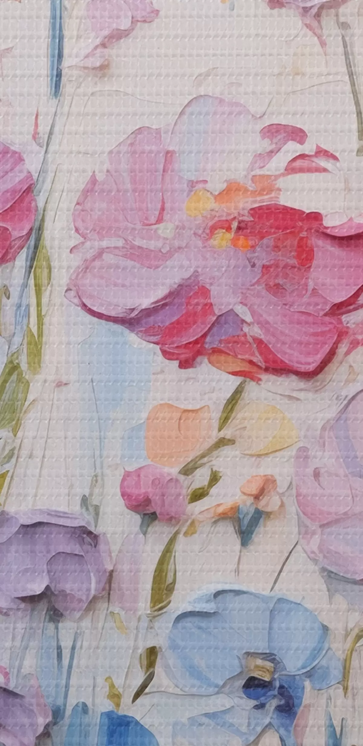 Trois types de matériaux peuvent être commandés : Economic Canvas - matériau dense et durable pour l'impression numérique, identique à la toile de peintre, surface imperméable, reproduction réaliste des détails, matériau à grain moyen. Premium Canvas - la texture ressemble à celle d'une toile de peintre (petits fils entrelacés). Reproduction douce et détaillée de l'image sur une surface mate. Eco-Premium - tissu 100 % coton de haute qualité. Grâce aux fibres naturelles de coton, le matériau est durable et résistant à l'usure. Excellente reproduction des couleurs et des détails.