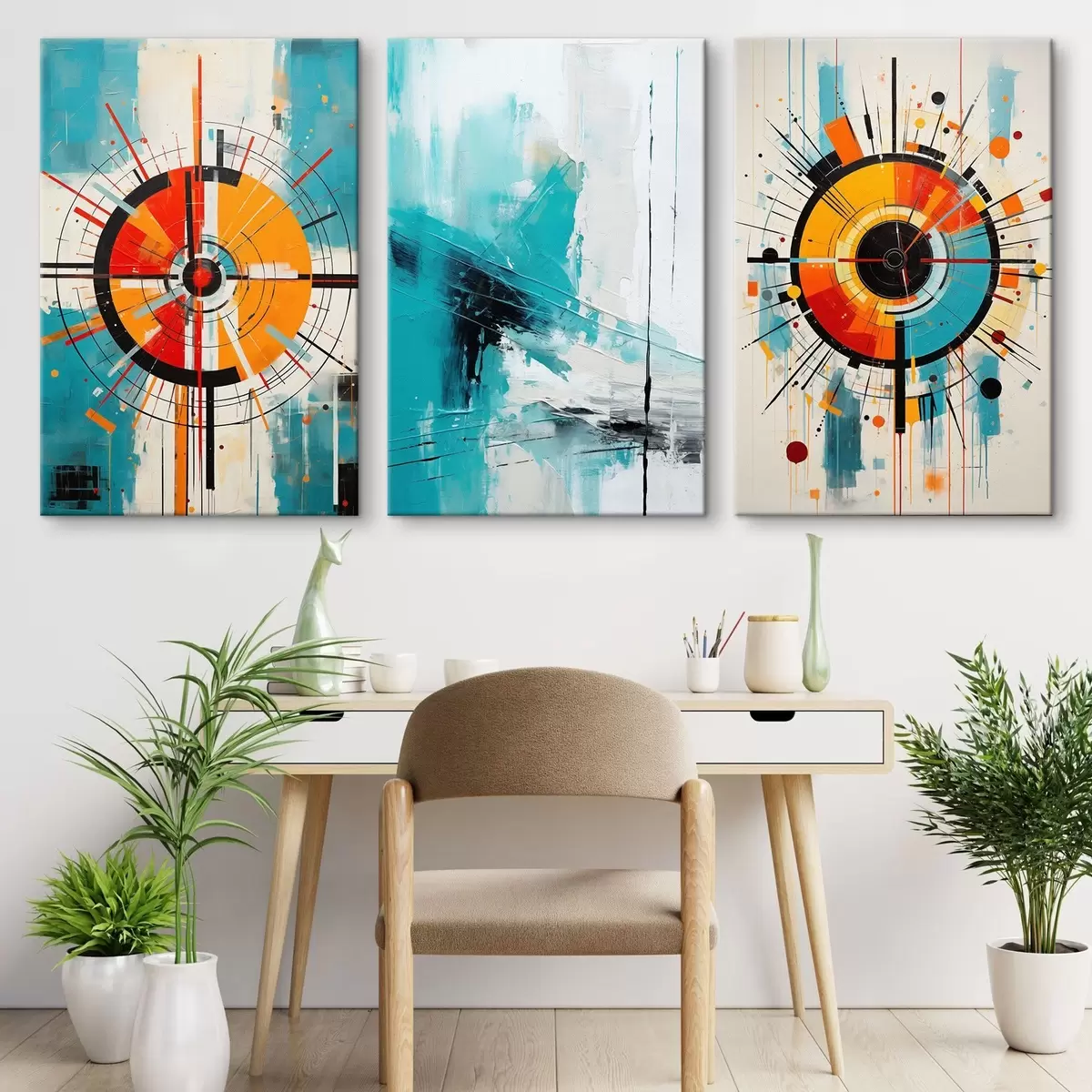 Peintures Abstrait radial avec éclats bleu sarcelle et orange m00973