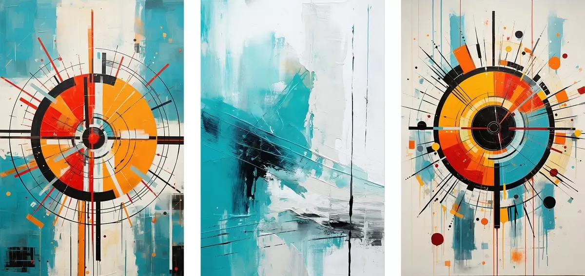 Peintures Abstrait radial avec éclats bleu sarcelle et orange m00973