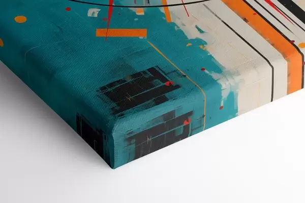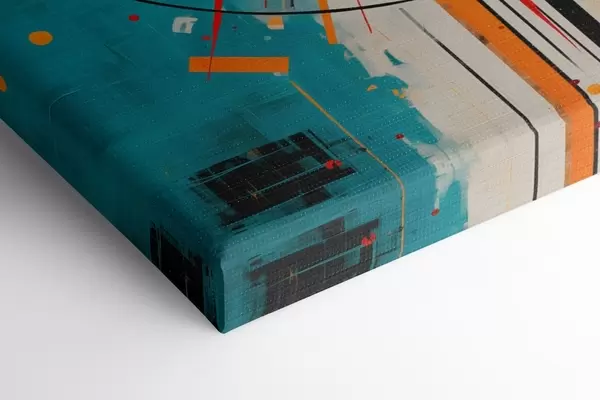 Peinture Abstrait radial avec éclats bleu sarcelle et orange Art. m00973