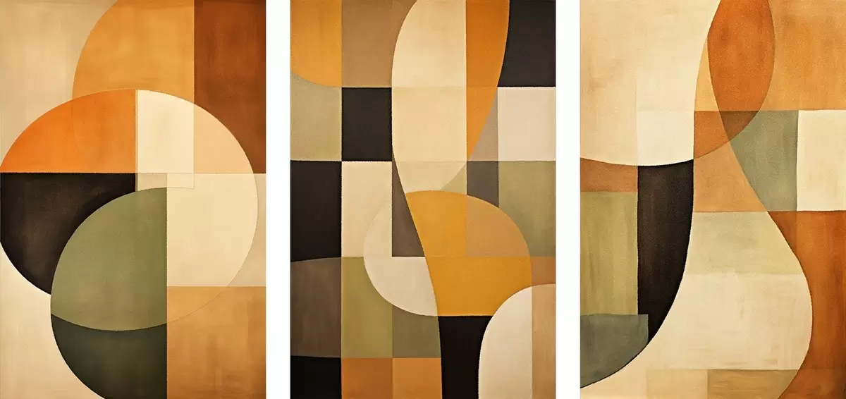 Peinture Blocs géométriques doux dans les tons beige, terre cuite et sauge Art. m00975