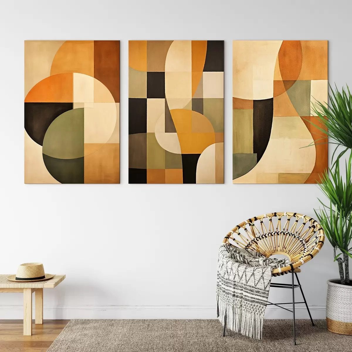 Peintures Blocs géométriques doux dans les tons beige, terre cuite et sauge m00975