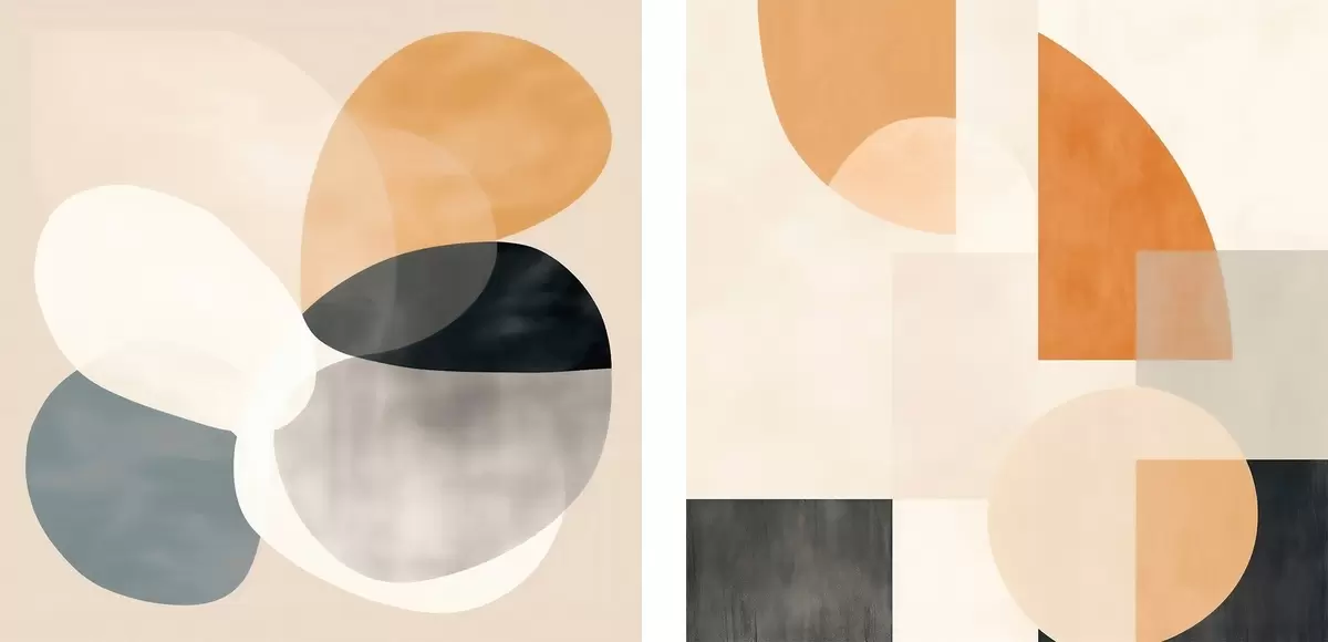 Peinture Intersections arrondies de formes dans le minimalisme aquarellé Art. m00993