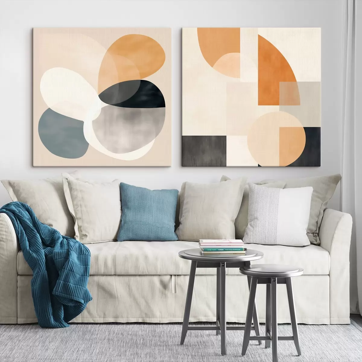 Peintures Intersections arrondies de formes dans le minimalisme aquarellé m00993