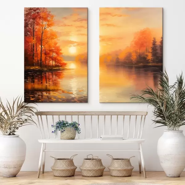 Peinture Forêt automnale au coucher du soleil Art. m01051