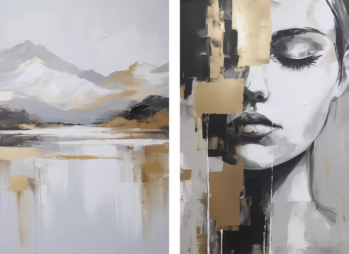 Peinture Paysage montagneux abstrait et portrait Art. m01058