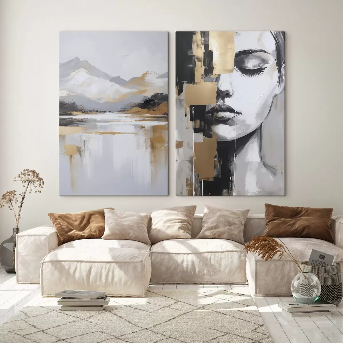 Peintures Paysage montagneux abstrait et portrait m01058