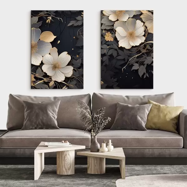 Peinture Grandes fleurs abstraites sur fond sombre Art. m01066