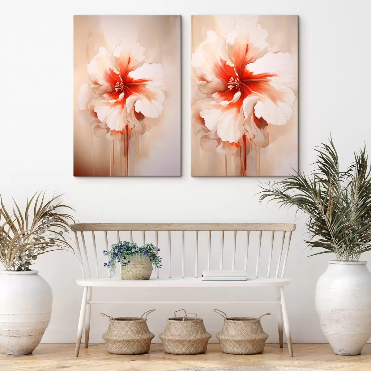 Peintures Pétales de corail blanc sur fond abstrait, composition apaisante m01089