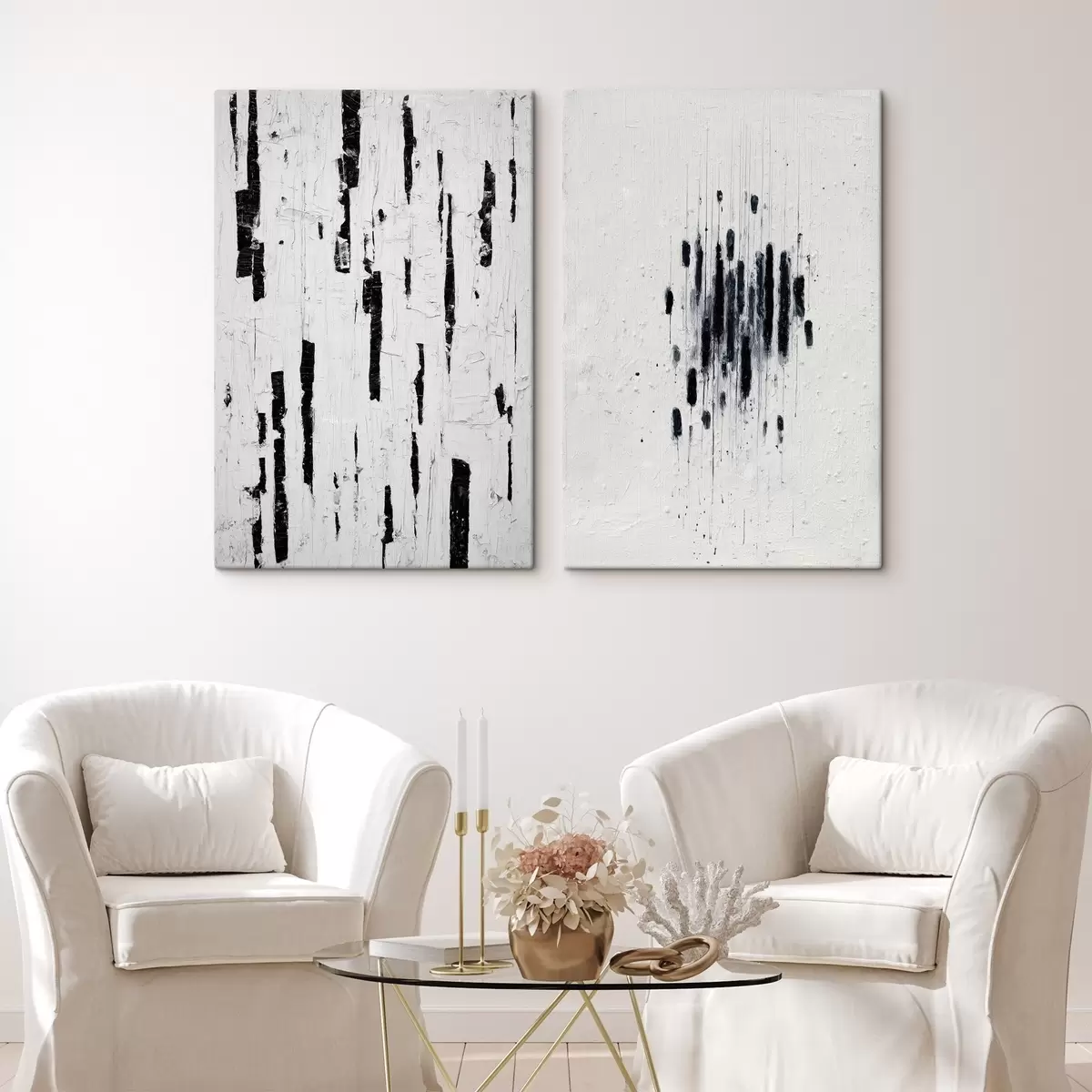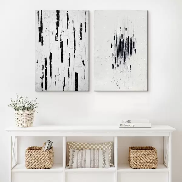 Peintures Art abstrait dans des tons noir et blanc avec une imitation de textures naturelles m01097