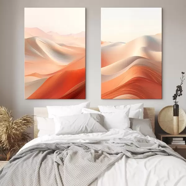 Peintures Paysage désertique abstrait avec des dunes de sable ondulantes dans des tons chauds orange et blanc m01123