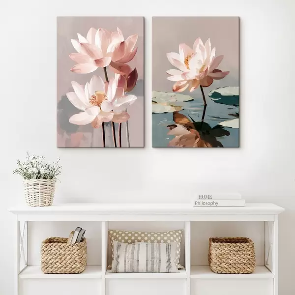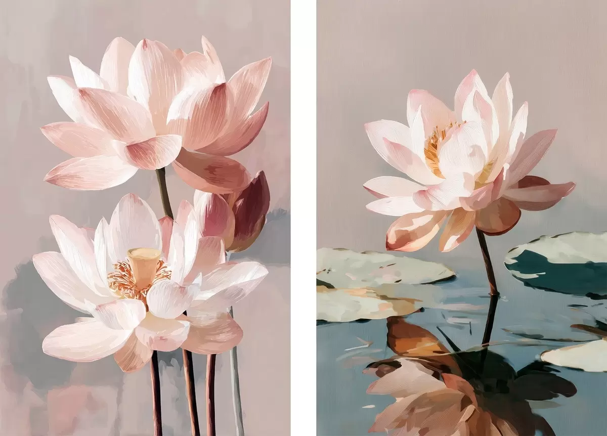 Peinture Lotus roses délicats dans un style de peinture numérique moderne Art. m01152