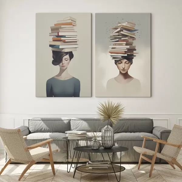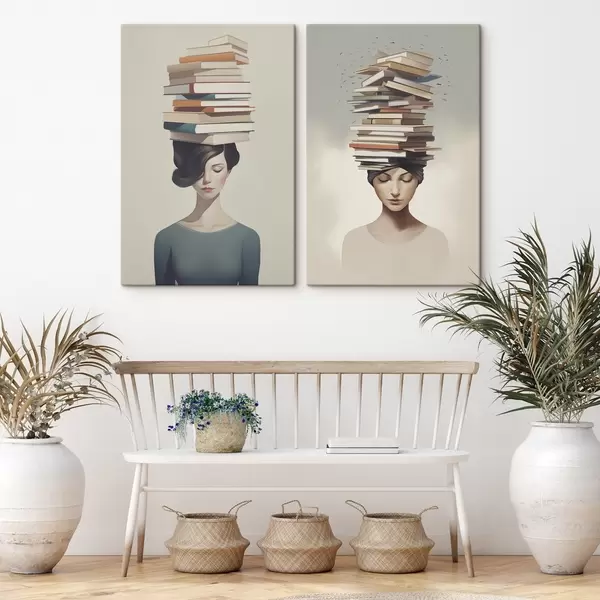 Peinture Portrait d'une jeune fille avec des livres Art. m01184
