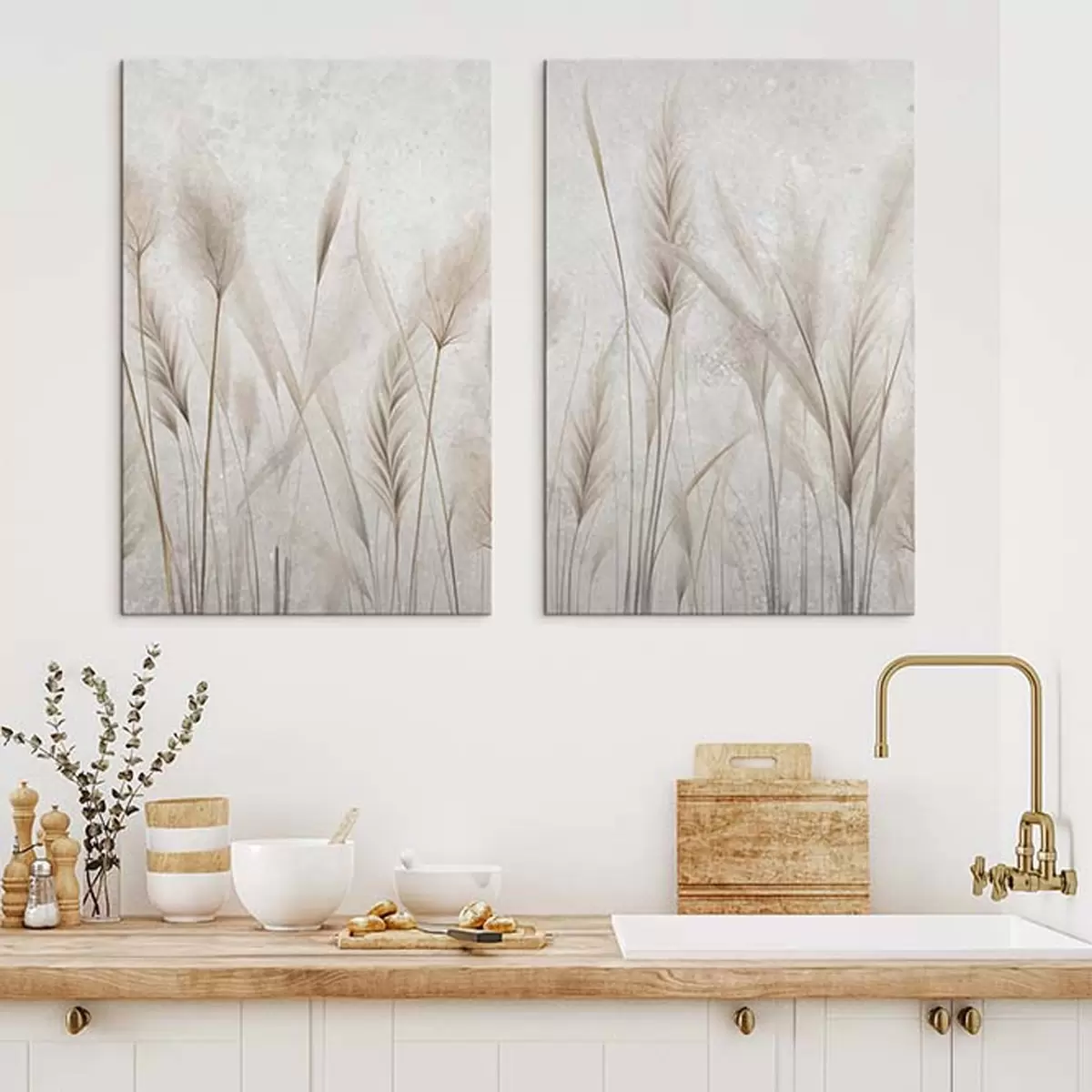 Peinture Épillets et herbe pompas sur un fond vieilli Art. m30024