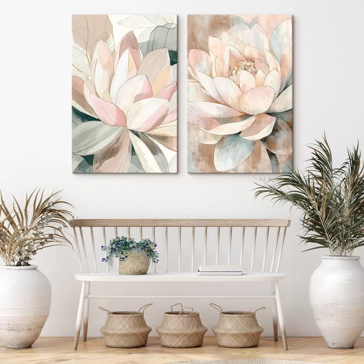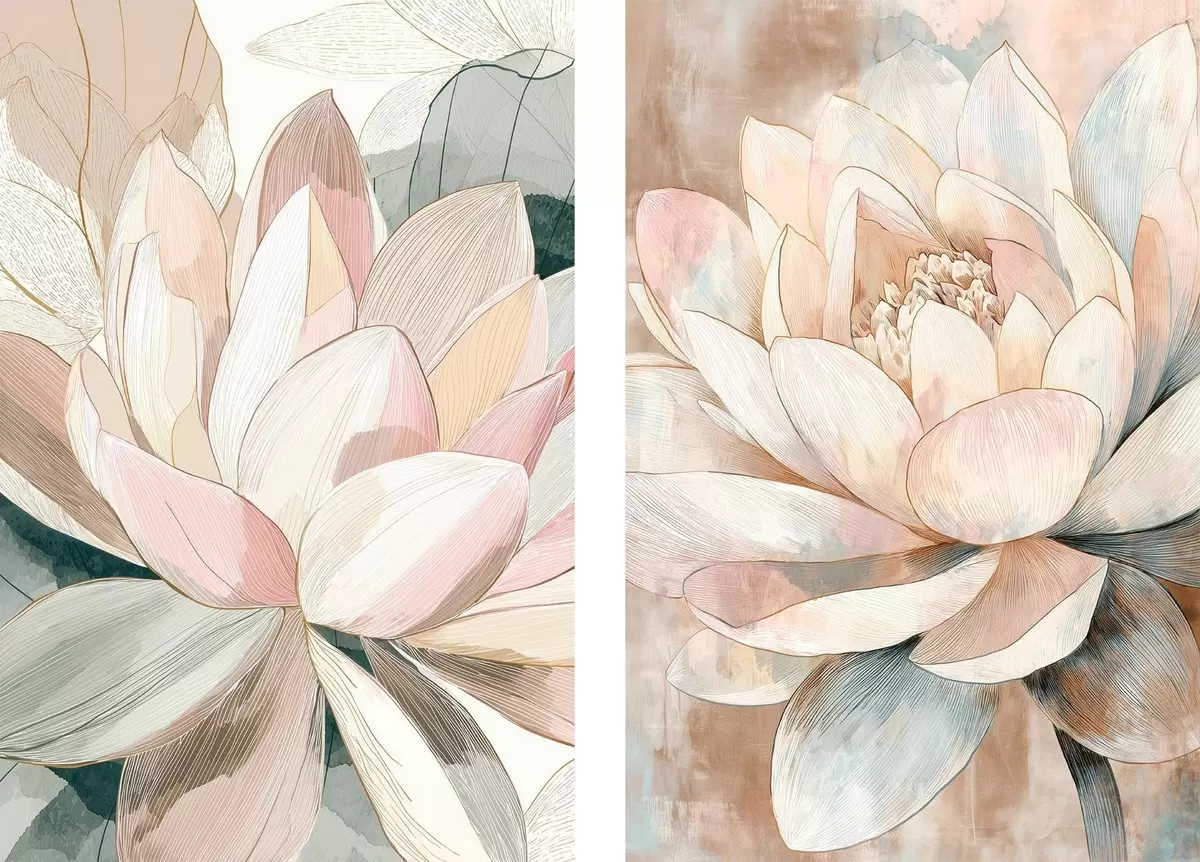 Peinture Composition florale avec de grands lotus dans une palette pastel-corail Art. m30034