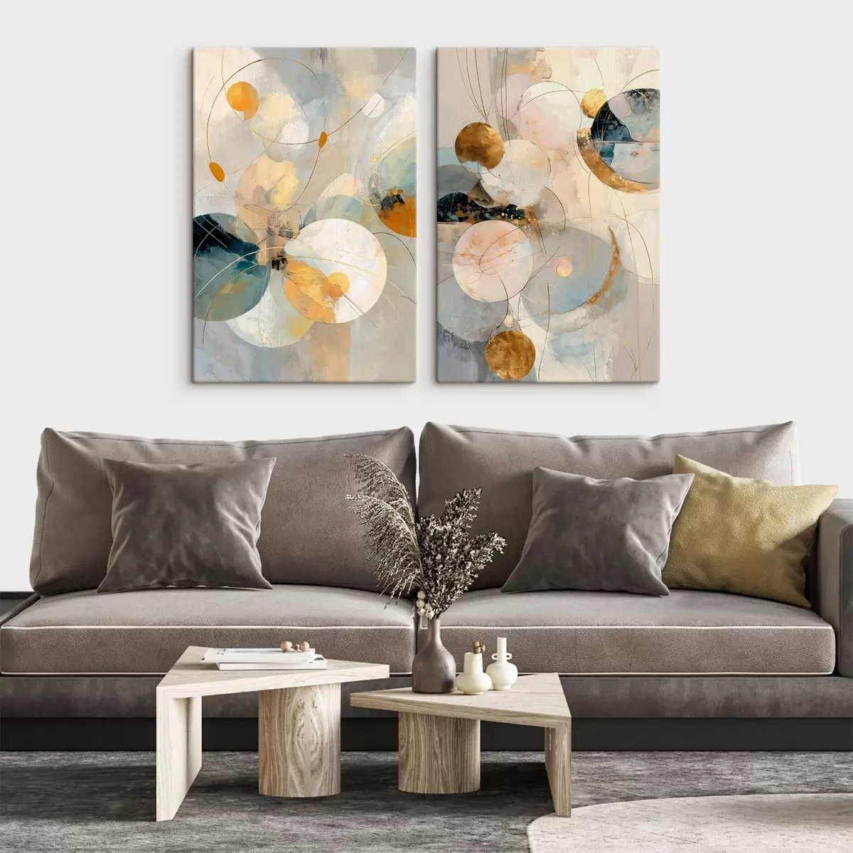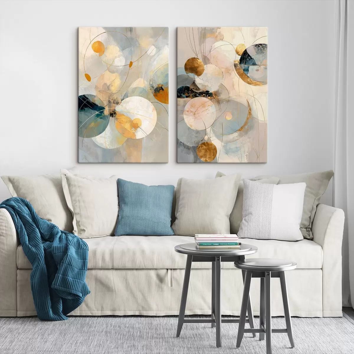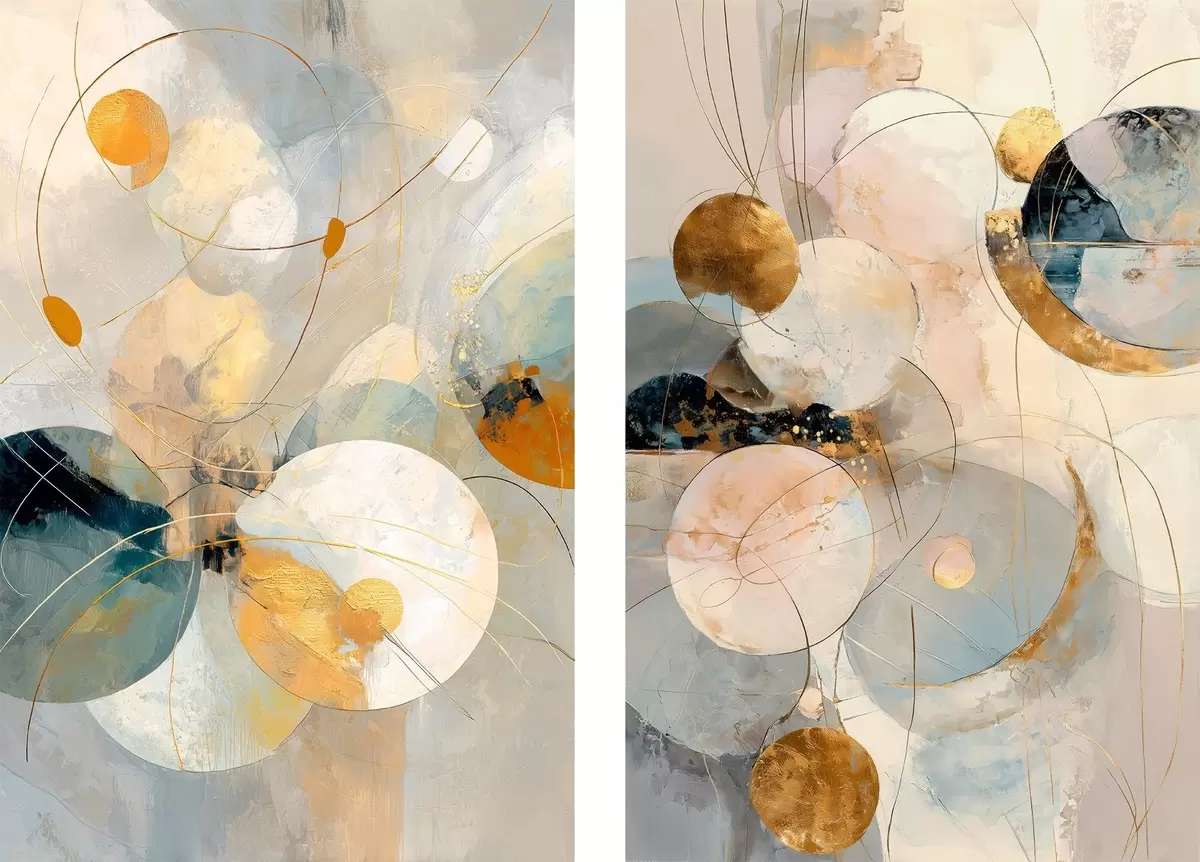 Peintures Art décoratif dans des tons bleu-crème avec un effet de lumière douce m30039